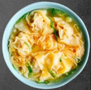 A Thai-Chinese noodle soup with Bahmi noodles, wontons (dumplings) of choice, and veggies, in a flavorful clear broth.